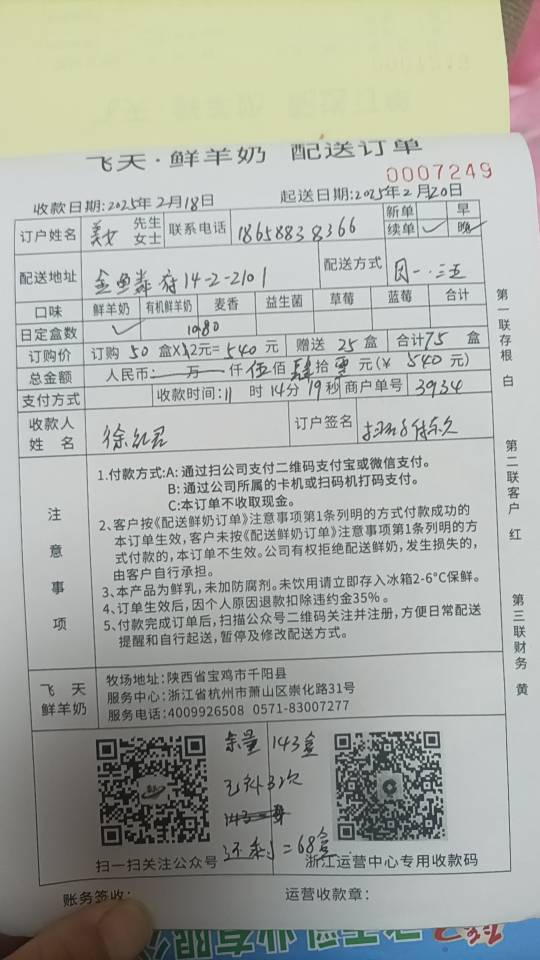 飞天羊奶绍兴客户服务