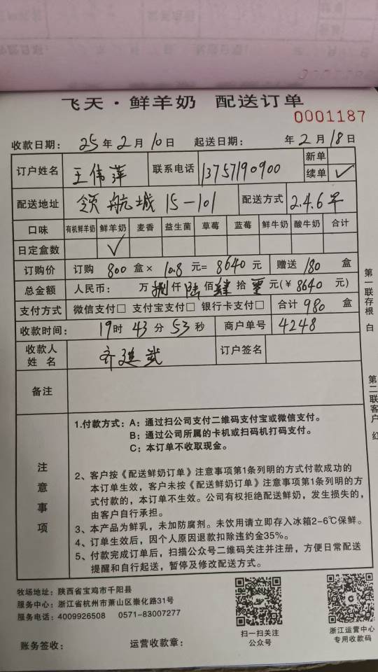 飞天羊奶绍兴客户服务